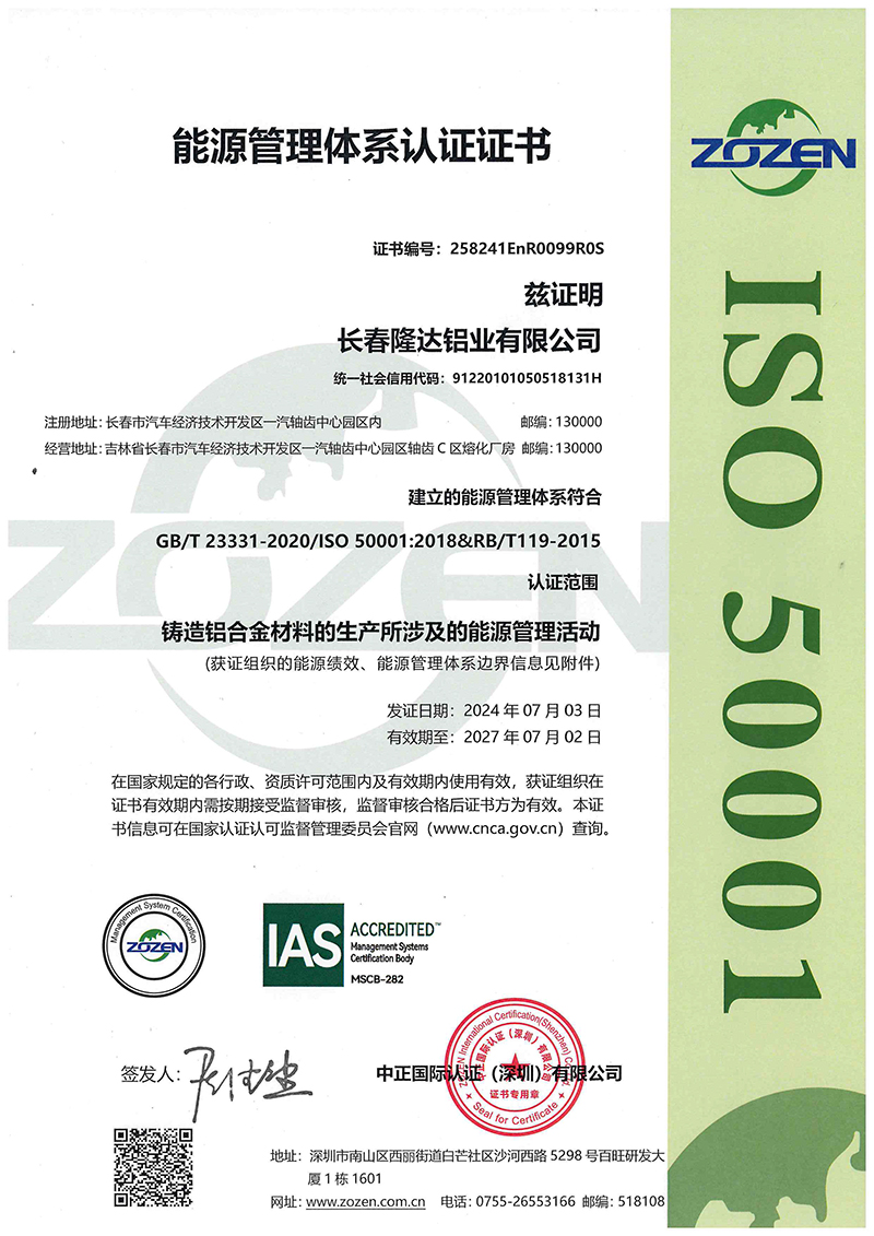 长春隆达铝业有限公司成立于2012年9月5日,公司位于长春市汽车经济技术开发区一汽轴齿中心园区内,系立中集团隆达铝业全资子公司,配套于一汽铸造公司直供铝液,注册资本8,000万元,占地面积9500㎡,企业人数百余人。